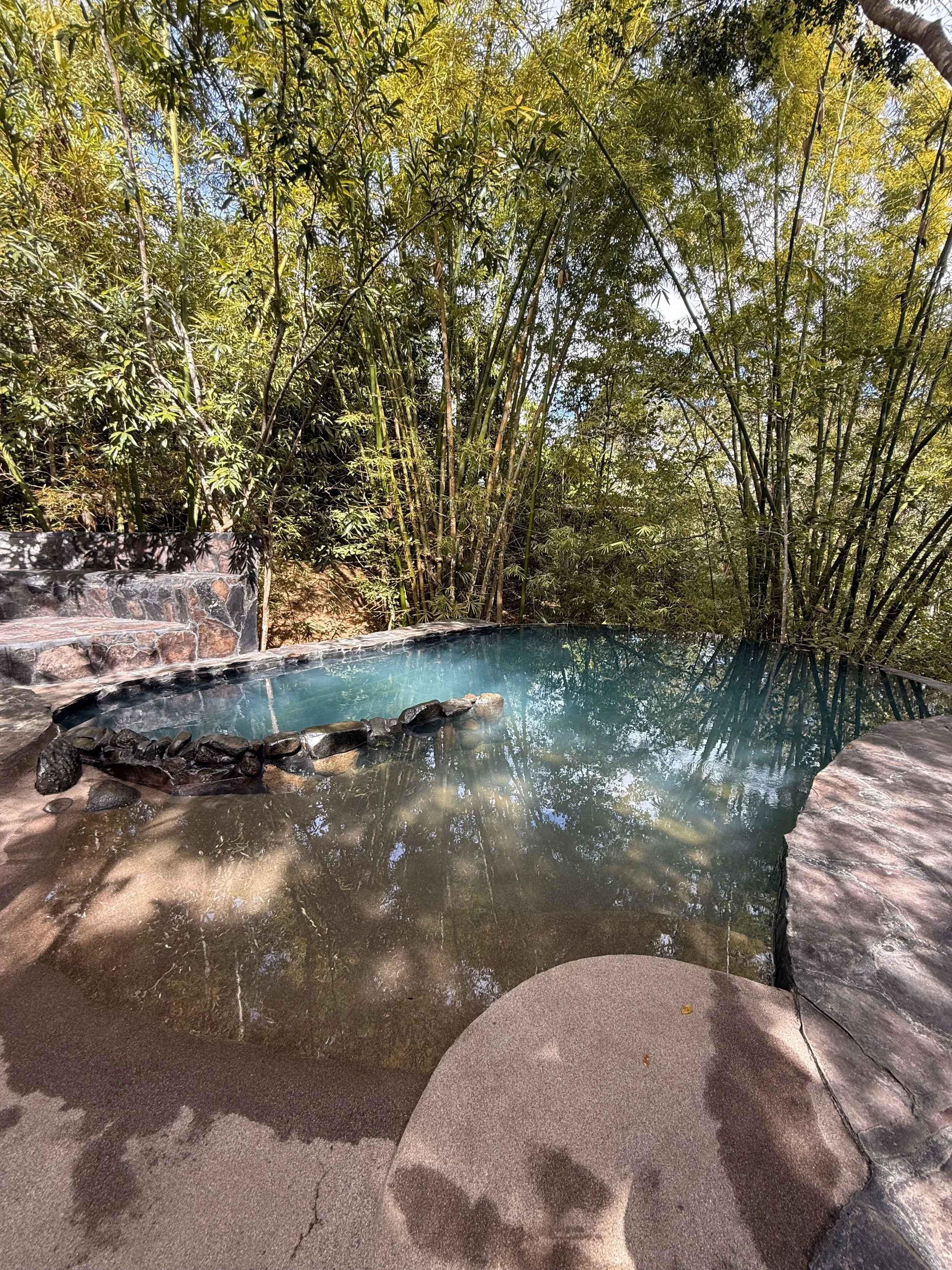 The property itself invites solitude without isolation. Candlelit walking paths wind through the jungle, ideal for quiet reflection, prayer, and the slow, attentive movement that supports practices like altar making. Though some rooms are shared (with separate beds), the casitas are intentionally spaced to preserve privacy. Benches and tucked-away corners throughout the grounds offer natural pauses—places to sit, breathe, and listen.