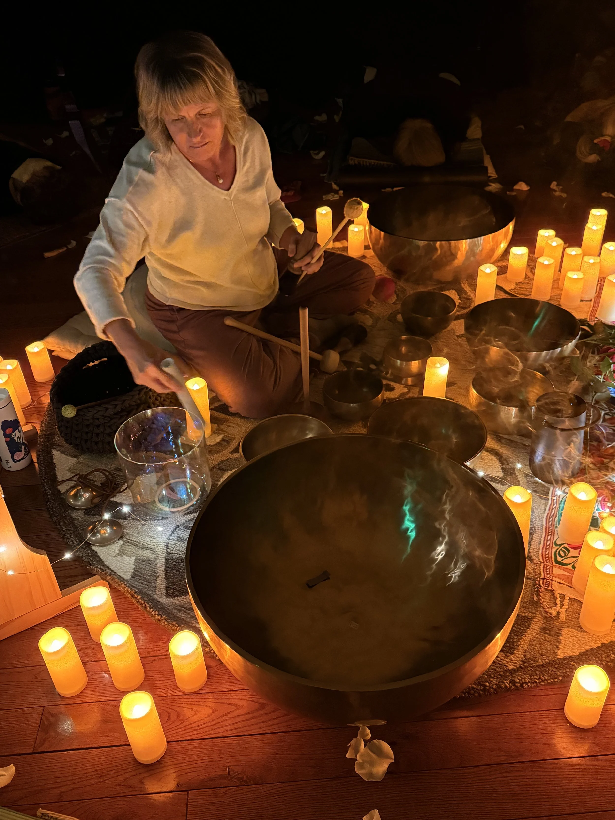 As a Desert Mother, Alice offers resonance rather than direction. She trusts sound to do its sonic work — clearing, soothing, awakening — while she tends the space with care and presence. Her hosting invites participants to receive rather than strive, to be met rather than perform.