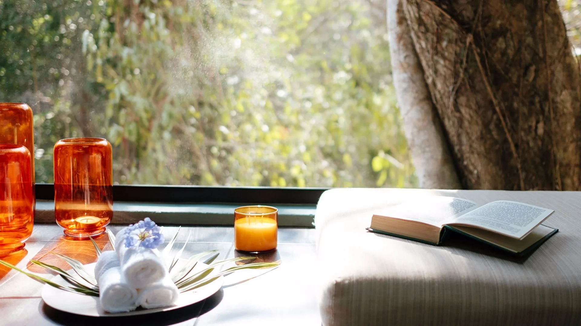 Daily surrender altars and contemplative practices by the pool and along lantern-lit jungle paths