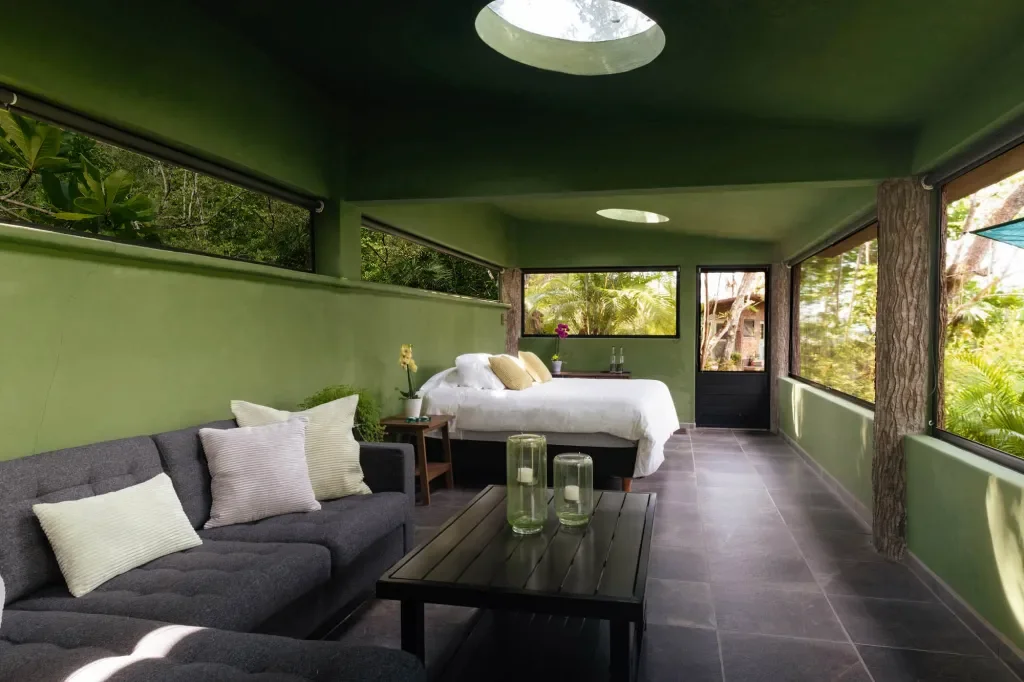 Elegant, eco-luxury accommodations at Equilibrium’s jungle sanctuary, with thoughtful attention to detail and included airport transfers